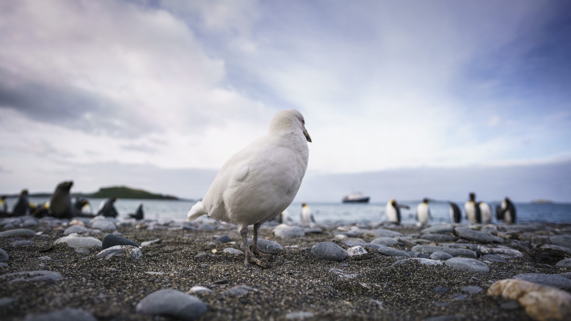 W drodze do Południowej Georgii, przekraczamy strefę konwergencji antarktycznej (wąski pas wód powierzchniowych uważany za granicę Antarktyki. Jest to miejsce, gdzie stykają się zimne wody płynące od Antarktydy „wślizgujące się” pod cieplejsze wody z północy). Zjawisko to przyciąga wiele ptaków morskich krążących wokół statku, w tym kilka gatunków albatrosa, szarańczaków, petrel, prionów i wydrzyk.